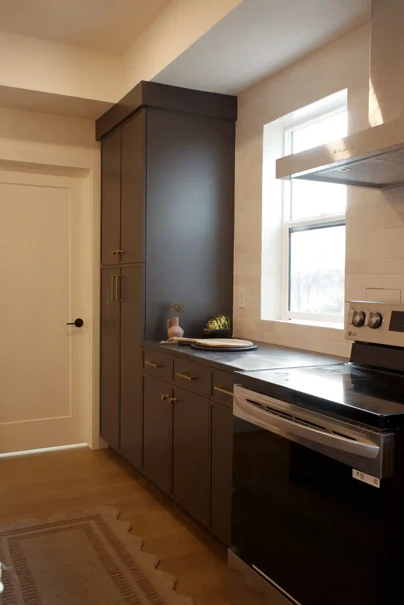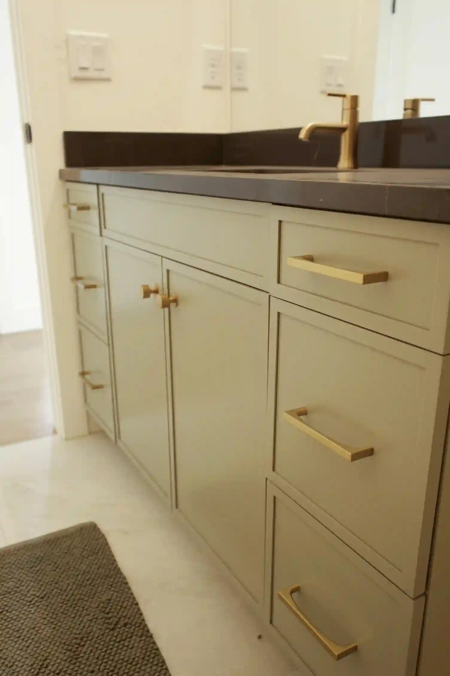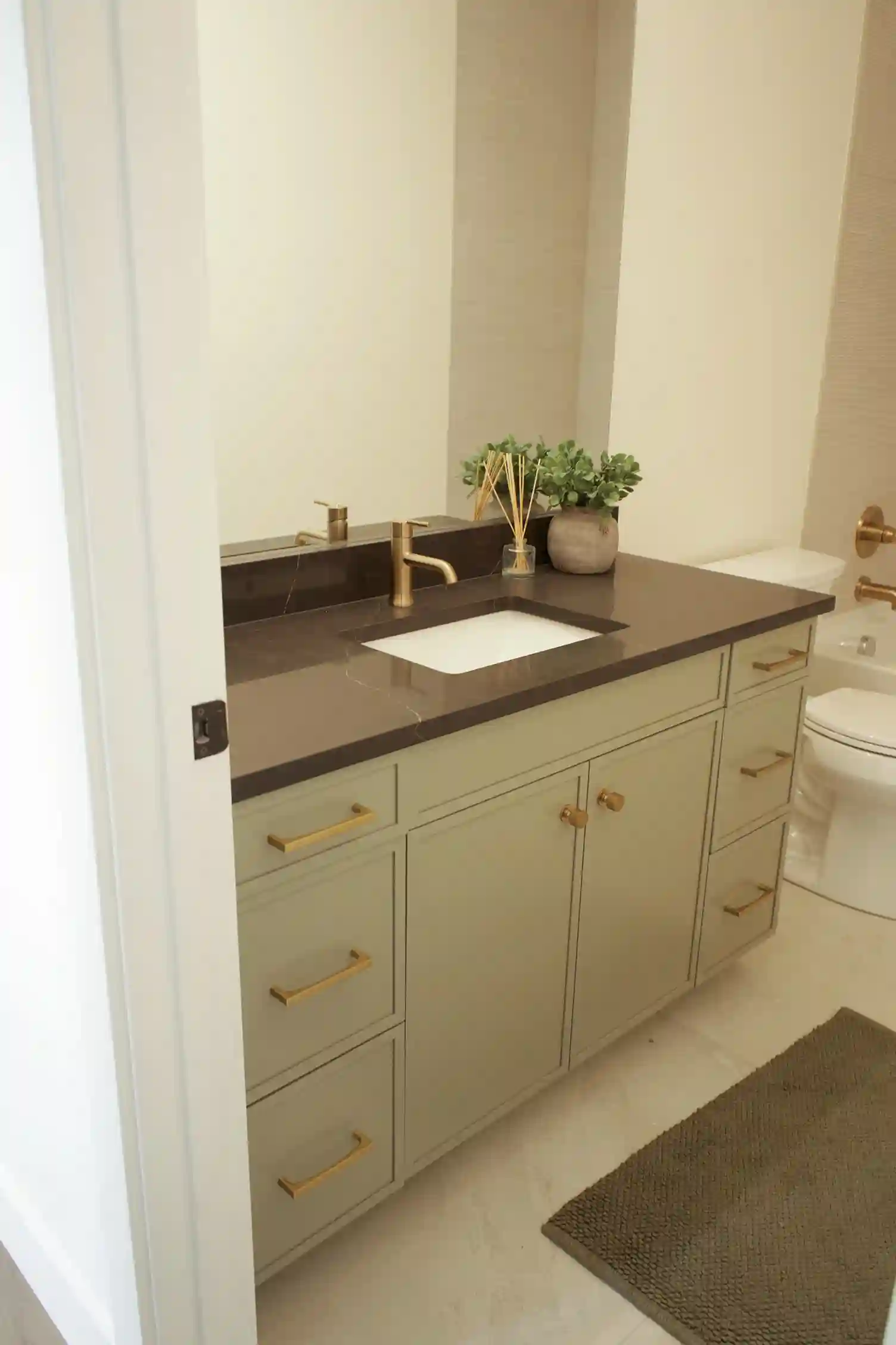 A traditional-modern interior concept in Salt Lake City, defined by a thoughtful cabinet palette of organic green and warm brown-grey tones. These finishes bring warmth, character, and a timeless quality to the overall design.