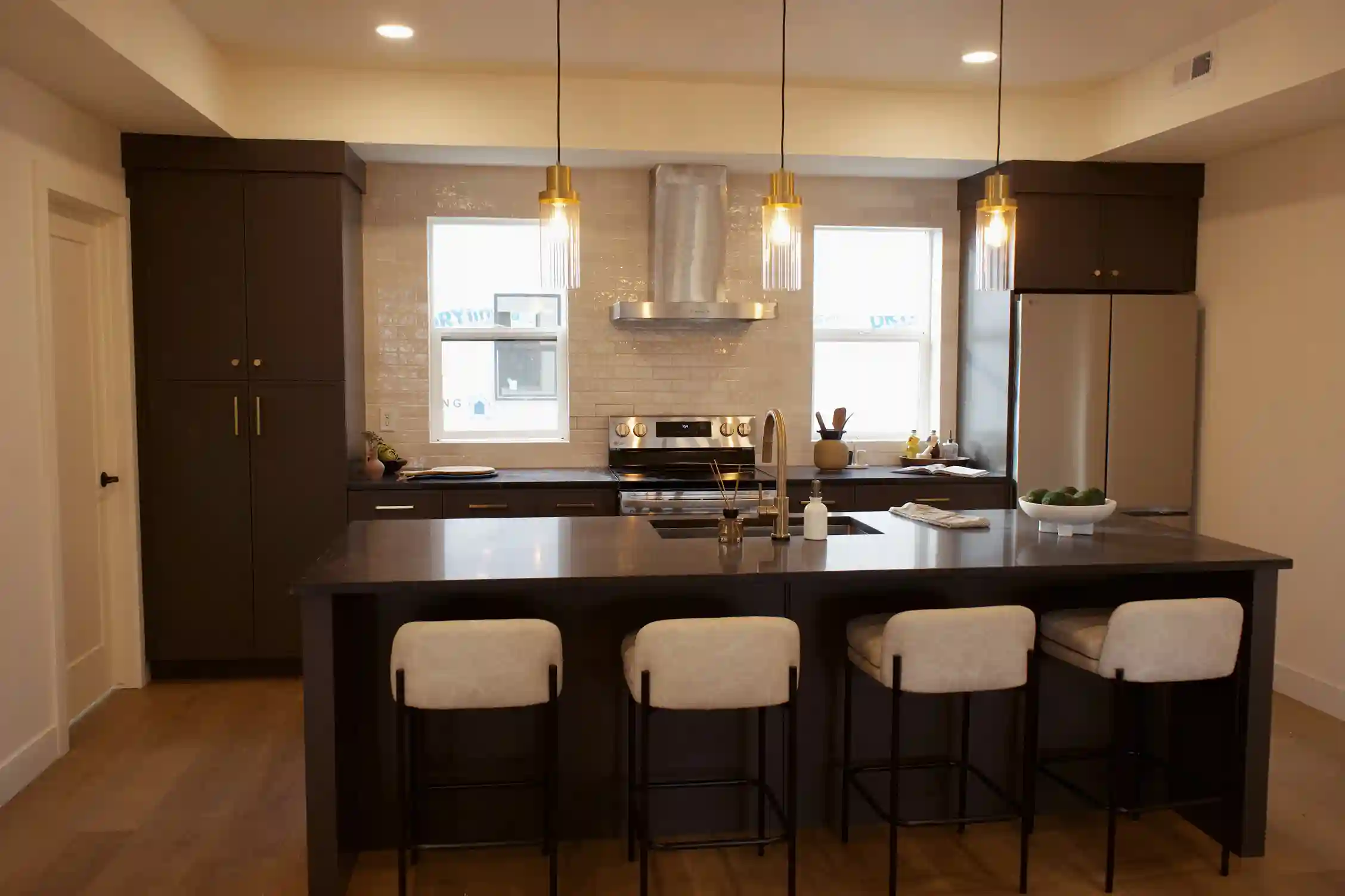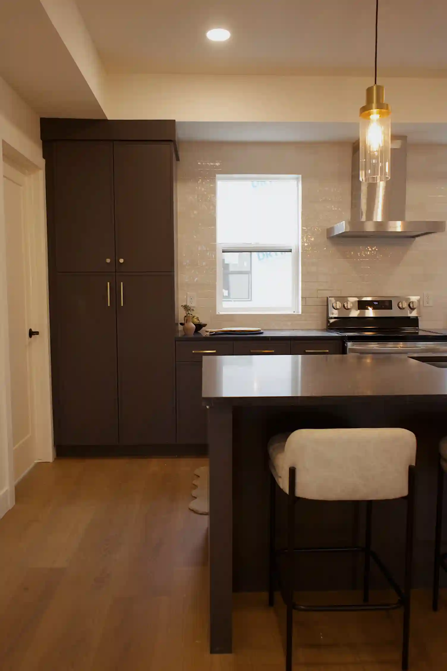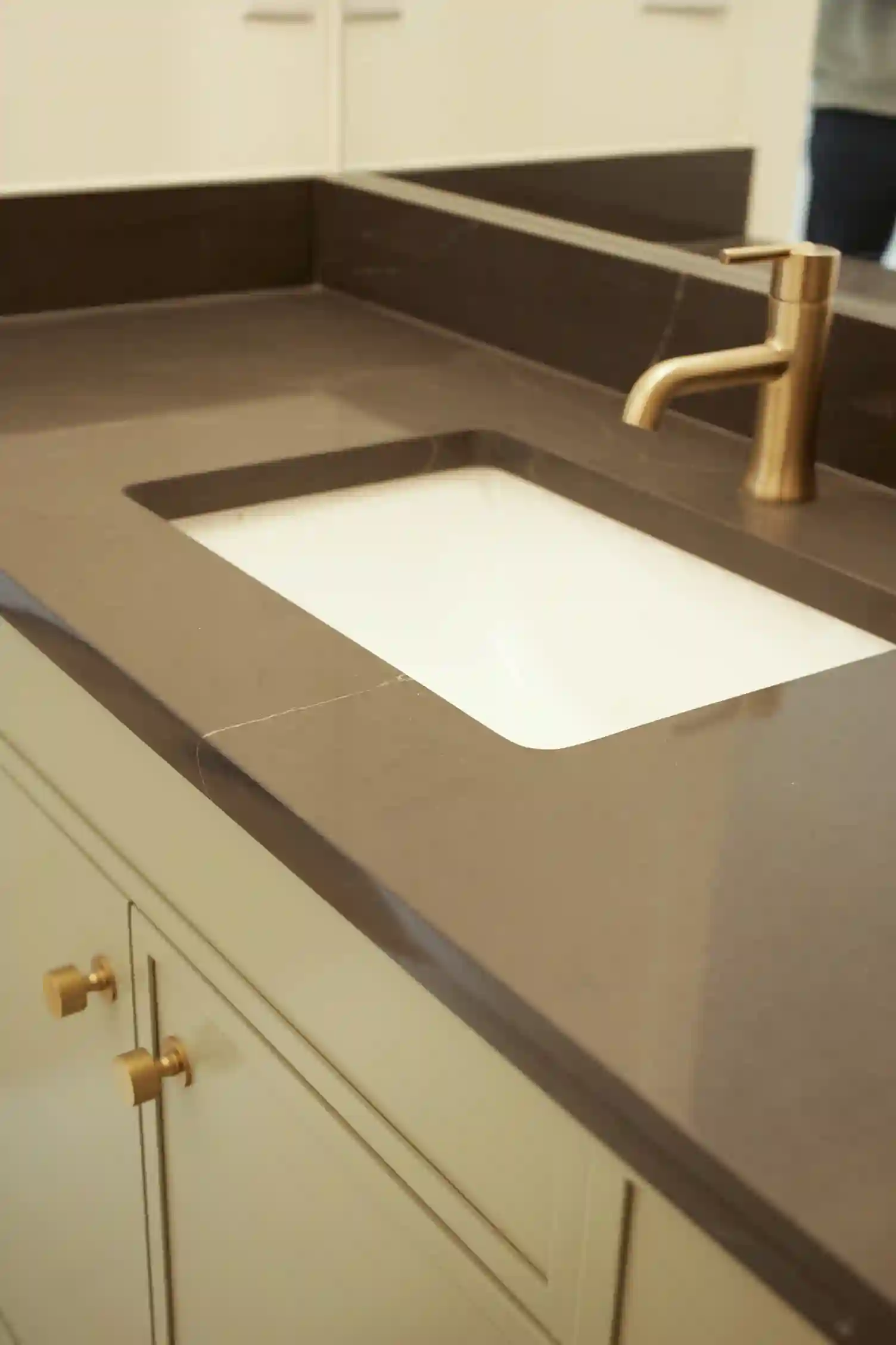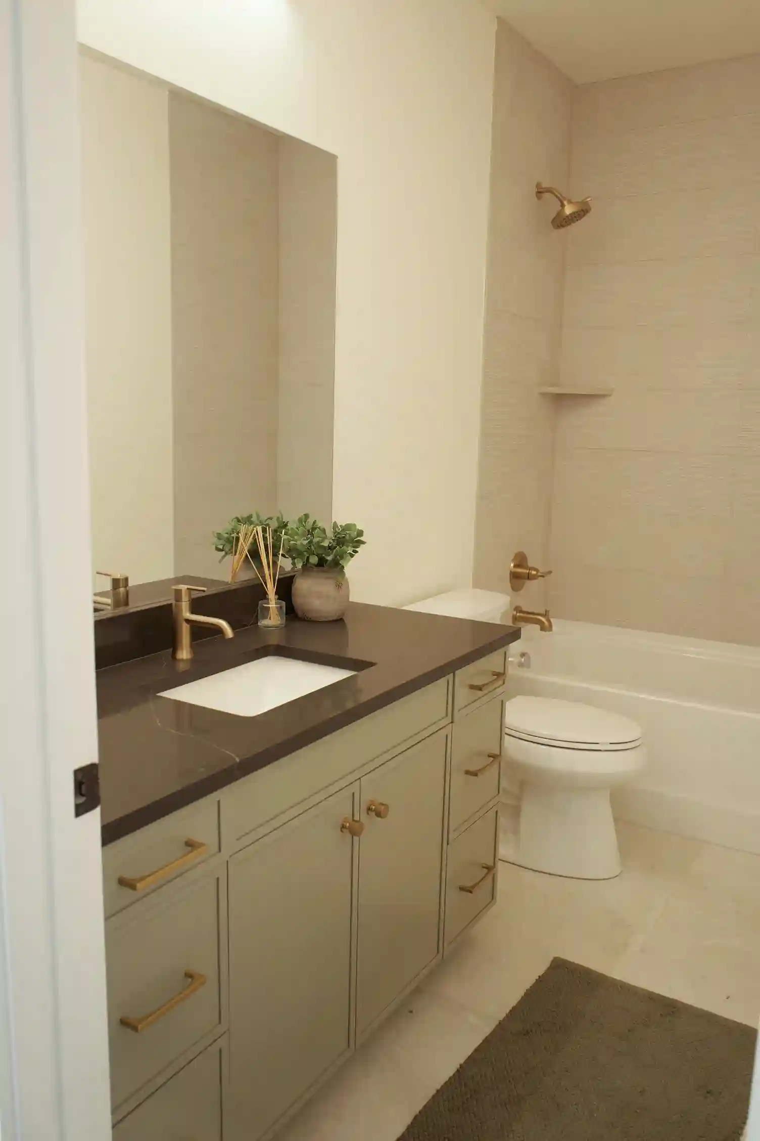 A traditional-modern interior concept in Salt Lake City, defined by a thoughtful cabinet palette of organic green and warm brown-grey tones. These finishes bring warmth, character, and a timeless quality to the overall design.